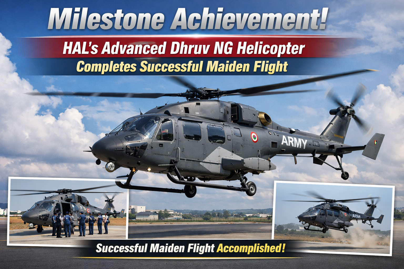 Milestone Achievement: HAL’s Advanced Dhruv NG Helicopter Completes Successful Maiden Flight